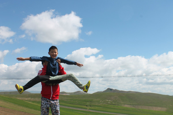 一直以來總以為壩上草原是一馬平川一望無際的,也總是想著在閑暇的假期帶著孩子去感受一下那里的藍天白云,綠草鮮花,沒想到一個偶然的機會認識了那里的一個姐姐,于是,我們還在北京游玩的一大家人,當即決定轉行壩上,從北京到壩上,我們可以說是一路曲折,不到三百公里的路程我們做了一天的車,在北京六里橋車站到豐寧,再從豐寧轉乘至大灘鎮北梁村的汽車,所以,我覺得,如果有條件自助游可以自駕的話,還是最好的選擇,當汽車沿著曲折的山路駛進豐寧境內的時候我才知道,原來這里是高原,跟北京比,這里海拔在1800米左右,天氣很是涼爽,晝夜溫差很大,所以,燕子溫馨