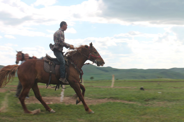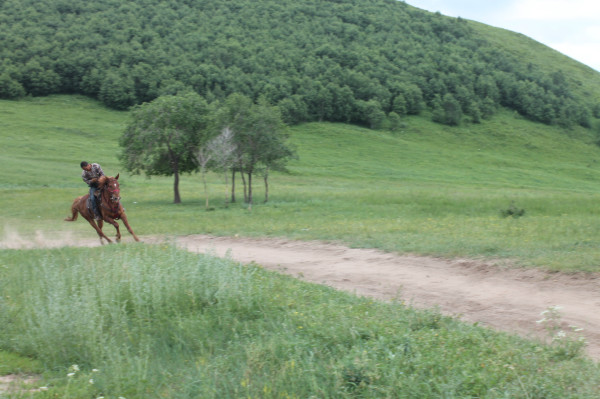 對,就是他,我老公的向導,在這片草原上,能跟他一較高低的人很少,每年,大灘鎮都會有賽馬,聽說是從八月份一直比到十月一,而去年,三場賽馬下來,這位吳四哥一下聲震大灘,他和它的馬拿了三個第一,人送綽號“馬王爺”,當時就有個人出雙倍的錢要買下他的馬,被他回絕了。不過有一點,他的馬,是匹烈馬,你可不能隨便動。而他們家也有馬隊,大概二十匹左右,是我們住的的那家農家院主人的弟弟