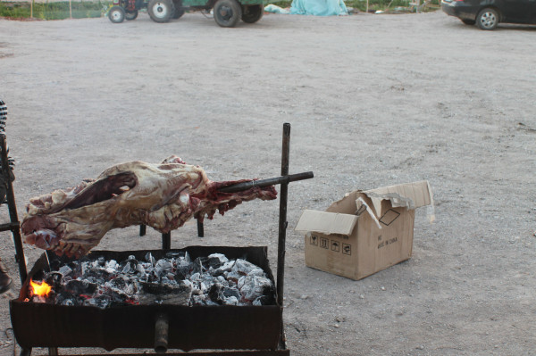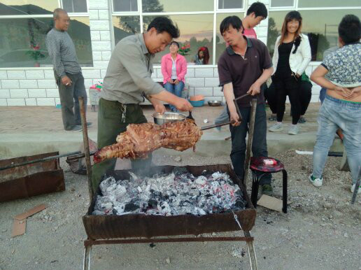 這就是草原上最美味的烤全羊,烤出來的羊肉外焦里嫩,很好吃。如果你們人不多,就可以幾家拼一只,或是只烤羊腿或羊排。