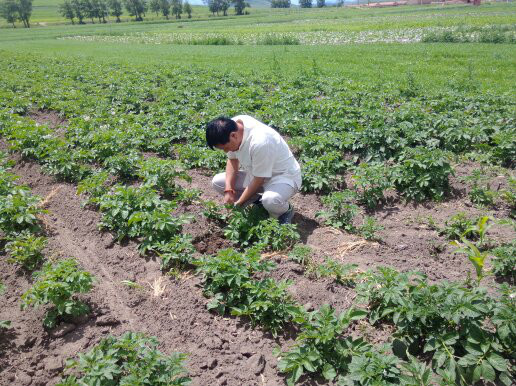 我們在后院挖土豆,結果太小,還不能吃呢。這可是純天然的。