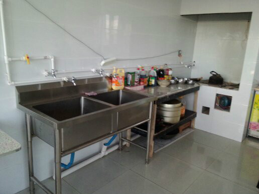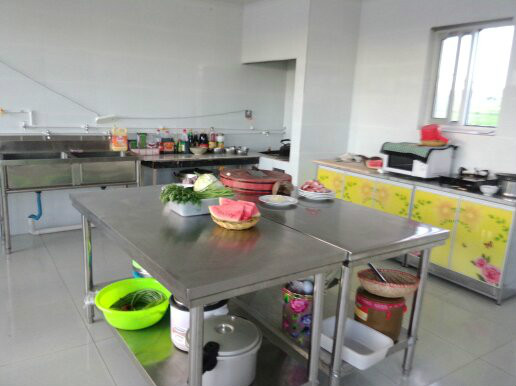 這是他家的廚房,很干凈,角落里還有消毒柜,讓人吃著放心,看著舒心。
