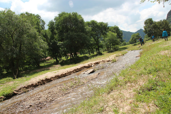 第二天一早,直奔老掌溝。一般來說,老掌溝是一條比較有名的汽車越野穿越路線,正因為如此,人們反而容易忽略溝里隱藏的一些景色,特別是那些隱藏在樹蔭后的大片花叢,美得不可言喻。順河而動,一路向南,渡河,走林蔭,拍花叢,最后在三岔口停下休憩野餐。當我們疊羅漢似的朦朧睡去的時候,耳聽流水聲悠悠傳來,綿長不絕,如輕聲細語,勸君早息,又似催眠曲調,釋放心懷,我們是那么放松,一切是那么美好….還記得溝里回返的路上,我們遇到了幾個車隊,當我看向其中一輛越野車時,車窗里向我伸出一個大拇指,一剎那間,頓感自豪,于是禮貌的回了一個大拇指,哈哈….