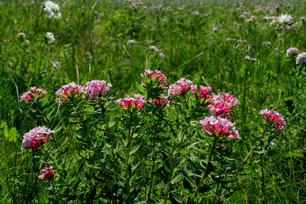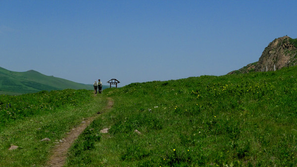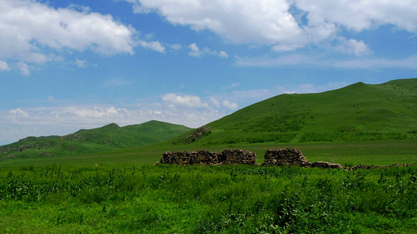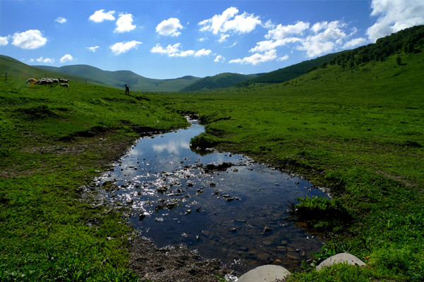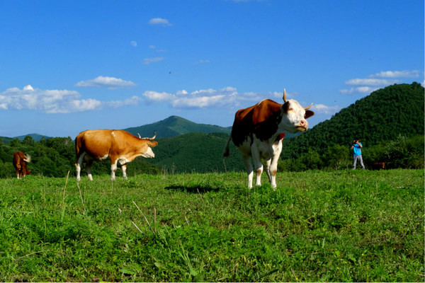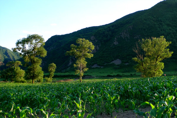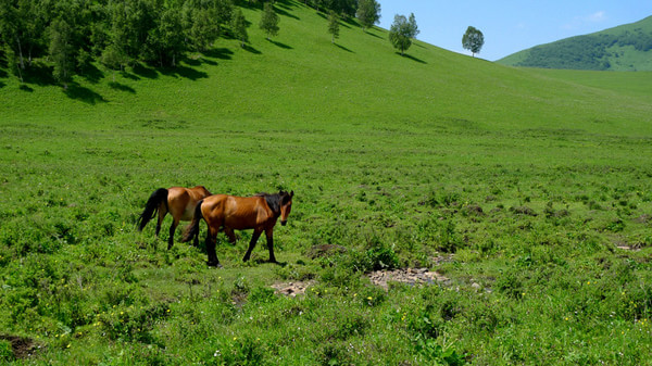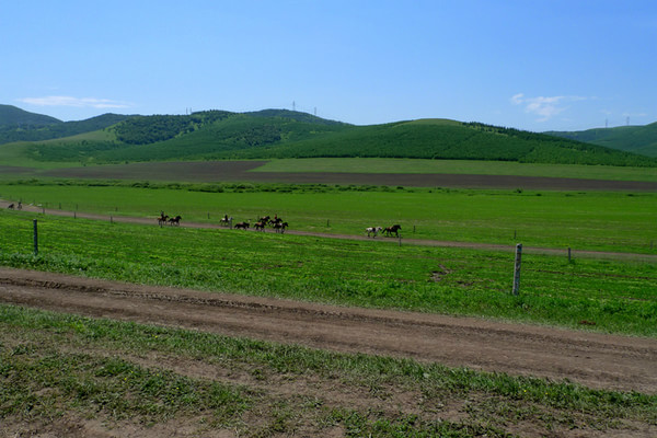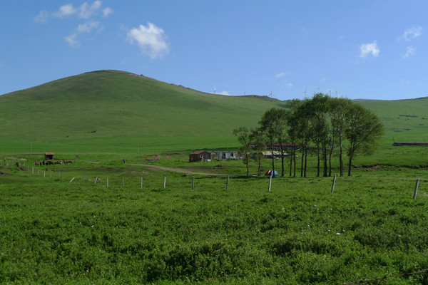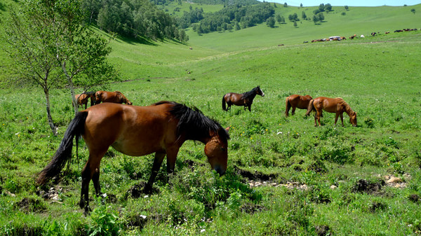 晚上7點多才到目的地,老柵子村。一夜農家院休息無話。 第三天一早為了避開中午的太陽,決定早點出發,6點起床吃飯后,包車到山下(大家腳上都起泡了所以決定包車)少走了10公里的碎石路,上了一個緩坡到埡口,以后都是在草甸上走,七公里玩玩歇歇,溜溜達達,直到中午趕回孤石,農家院飯已做好,吃飽了,上車踏上返程的路。 孤石的馬群和羊群