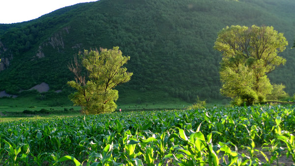 夕陽下的老柵子村