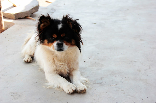 院子里出現過不同品種的小狗,這是其中一只最不淡定的。永遠經不起好吃吃的誘惑。
