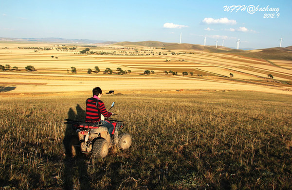 這幾年去壩上我們已經不再騎馬了,每次都是兩個人租一輛草地越野摩托,飛快的在草地上馳騁,