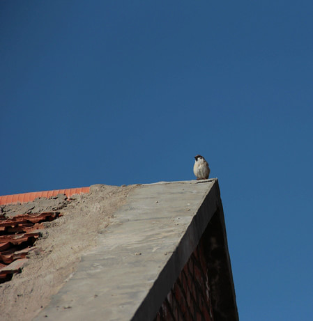 早晨站在房檐的胖麻雀