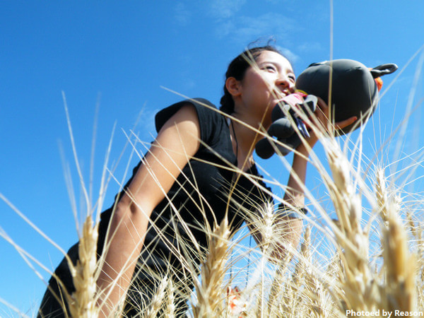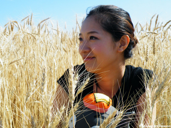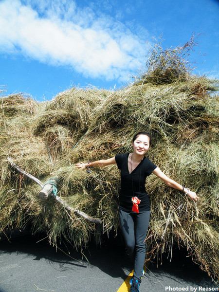 只是我更幸運,不僅爬了草垛,還有美女做模特