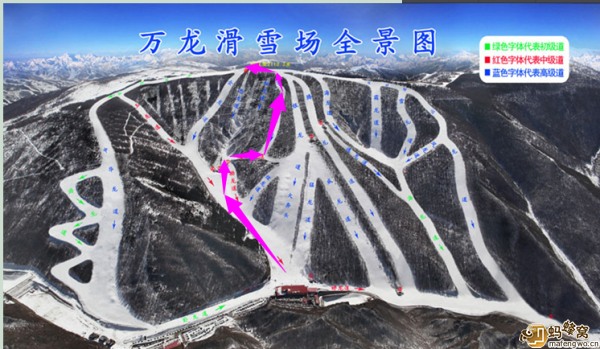 借用萬龍滑雪場的導(dǎo)游圖,畫下我們爬山的路線圖