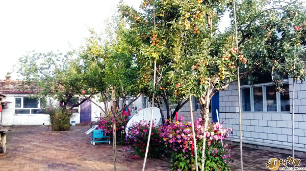 在崇禮縣城吃過火盆鍋后,我們在離萬龍滑雪場不遠的農(nóng)家院住下。小院打理的干凈、整潔,院內(nèi)果樹上的果子紅彤彤的喜人、誘人,掛著露水很是新鮮;樹下的“太陽花”也是嬌艷欲滴,關(guān)鍵是農(nóng)家院干凈不說,價格也合適,可惜沒訂上土炕,要不晚上睡覺肯定倍兒爽。不過因為我們訂了四間房,老板也就給我們留了個大套間,任由我們挑房。