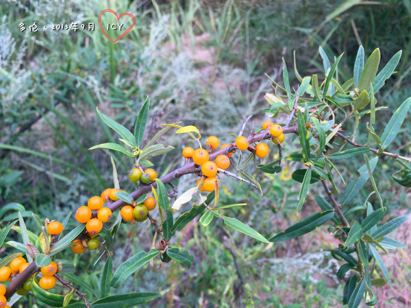 湖邊很多沙棘。不知道酸不酸,沒敢吃。