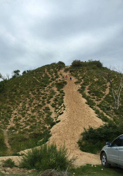 湖邊的小山沙化嚴重,變成了游人玩樂的大沙堆。