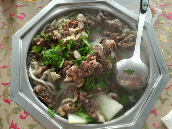 途中經過大河口鎮,路邊飯店吃了中飯:小鍋汆羊肉。其實就是類似涮羊肉的東東,價格比較實惠,兩個人吃了60元。