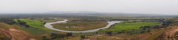 趕快靠邊停車,一看,果然就是這里。所謂太極灣,就是河道彎成了S形,如同太極圖案。太極灣對面有座小山,山腳下也立著塊牌子“喇嘛洞”。