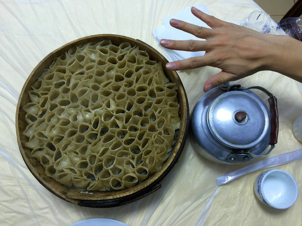 回到市區,雨繼續下,天已漸黑。找了家“高臺階莜面館”吃晚飯。可能因為下雨,店里只有我們一桌,點了莜面窩窩,超級大一份,味道也不錯。還吃了多倫特產:駱駝肉餅,很香。牛肉牛筋鍋,味道也不錯。