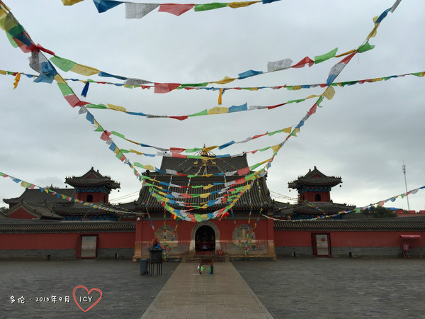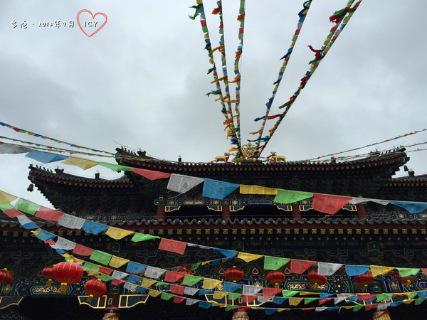 因為是喇嘛廟,掛了很多經幡,很美麗。大堂內有寥寥幾個喇嘛在做早課。