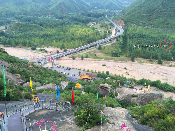 回望山上,快到山頂的地方就是“喇嘛洞”。好高,我們就不爬了。。。