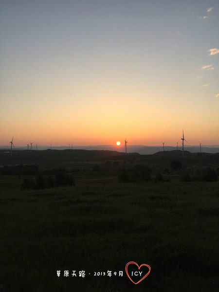 沿著高速一路飛馳,5點半多,我們就從“野狐嶺高速口”下了高速。收費站的玻璃上貼著好幾張紙:“草原天路向前左轉”。好吧,一定是來旅游的人太多了,必須得做個指示牌。。。
