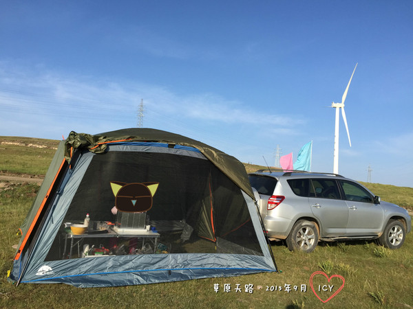 吃好飯,要收拾帳篷準備走人了。其實真心舍不得啊,畢竟支帳篷好費勁,簡直恨不得在帳篷里呆一整天才夠本!但今天小長假已經正式開始,北京的大部隊應該已經出發。事實上,6點半開始,草原天路上已經陸續有車駛過,早起的鳥兒們都出發了呢!如果這會兒再不走,晚些時候肯定會趕上天路堵車堵成北京三環的情況。。。